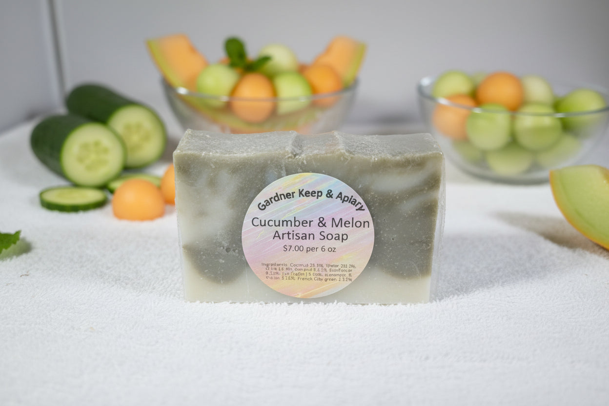 Experience the refreshing blend of cucumber and sweet melon with our all-natural Cucumber & Melon Soap. Made with expertly crafted coconut oil and olive oil, this artisan soap delivers a luxurious lather. Indulge in a truly indulgent bathing experience with this extra large bar.